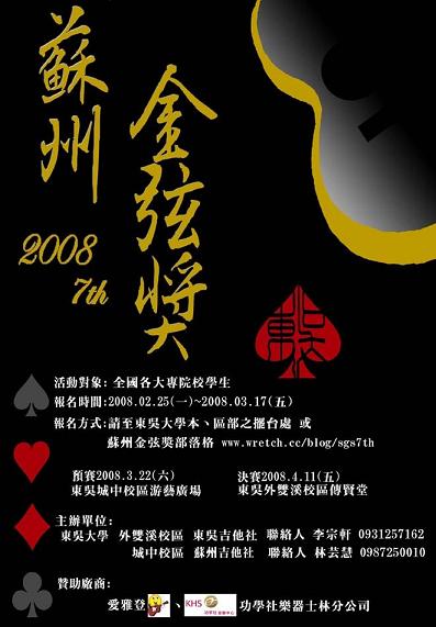 睡眼惺忪地開了MSN,本來只是想小聊一下,卻意外被玉米問要不要去看東吳〈蘇州金弦獎〉的吉他唱歌比賽。第一時間搖搖頭,玉米